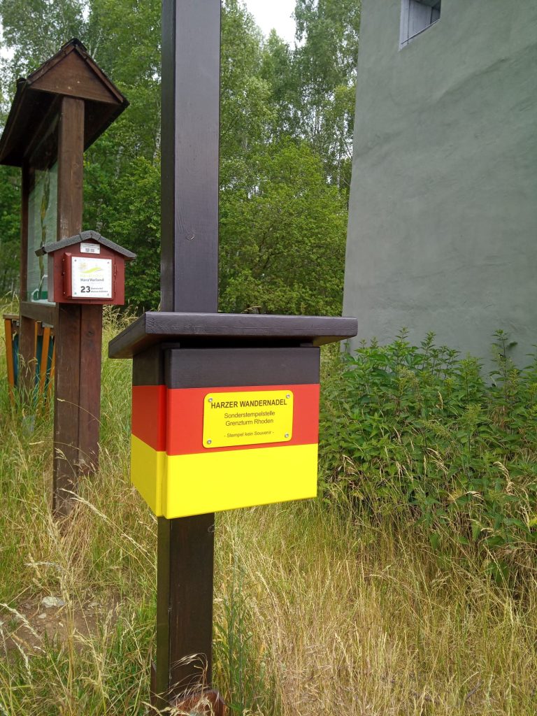 Frimærkestedet Rhoden grænsetårn ligger i Kleiner Fallstein – et naturreservat i den samlede kommune Osterwieck. Den indre tyske grænse har ændret landskabet. Et grænsetårn blev opført sydvest for landsbyen Rhoden i 1975 og står stadig på samme sted som en påmindelse om Tysklands deling.