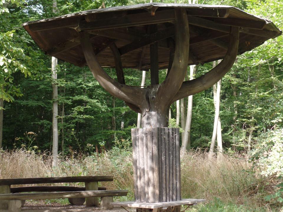 The „umbrella“ is a resting place in the Burgesroth-Bruchholz nature reserve between Ballenstedt and the Selke valley near Mägdesprung.