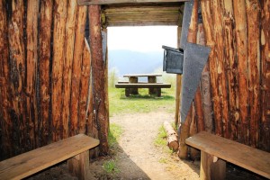 Von hier hat man bei schönem Wetter eine Sicht bis in das Weserbergland. Neben der Hütte befindet sich die Quelle des Tränkebachs.